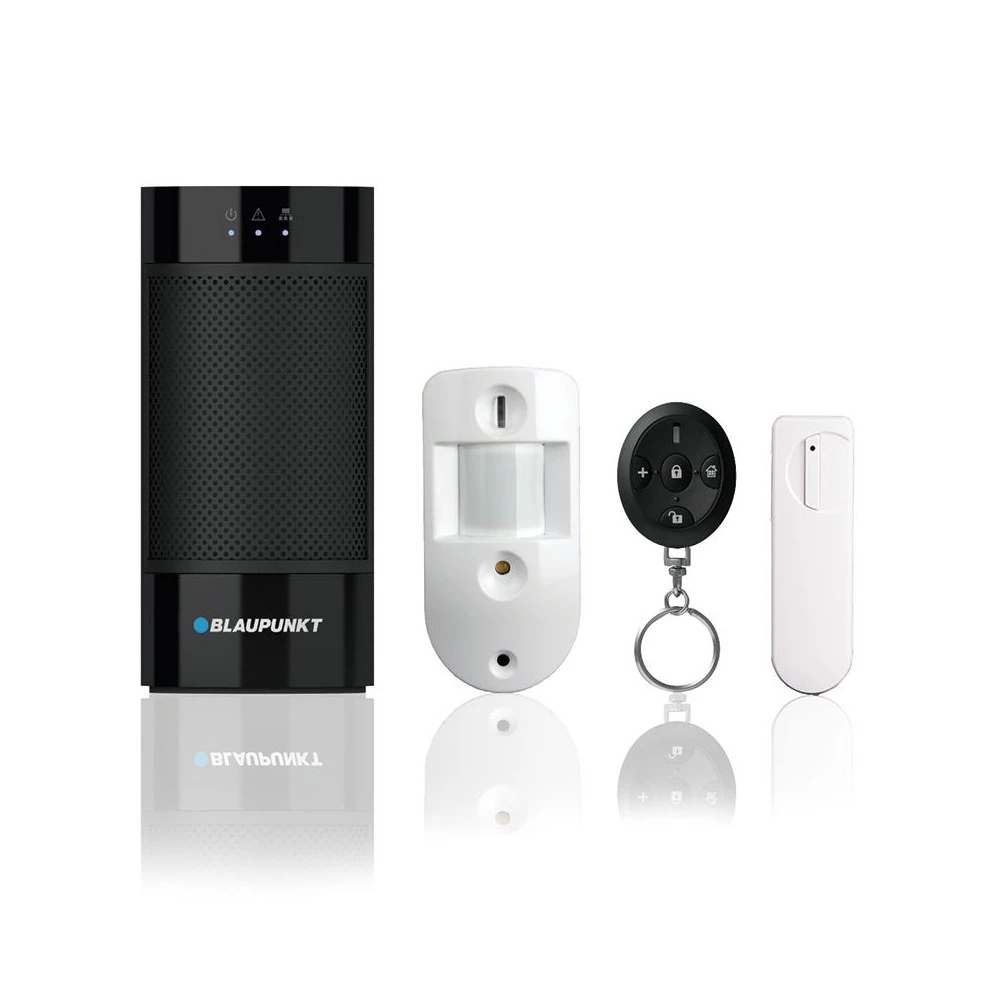 En Blaupunkt alarmpakke indeholder de basale dele, der giver et godt udgangspunkt for at sikre dit hjem. Der medfølger desuden manual, skruer og klistermærker.