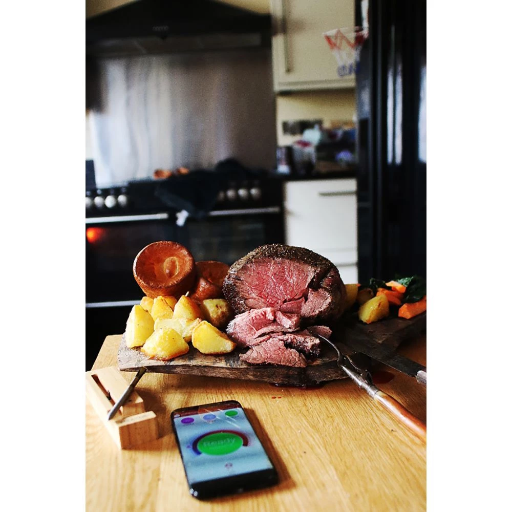 Meater stegetermometer vil samme med Meater app´en hjælpe dig med at stege den saftigste bøf, kylling, kalkun, fisk eller andet kød perfekt hver gang og til enhver lejlighed.