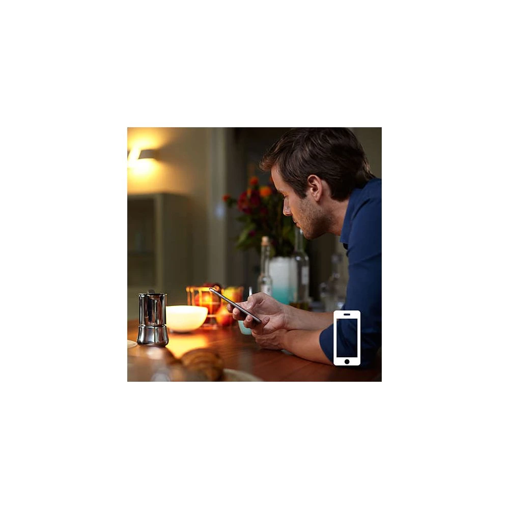 Denne Philips Hue-lyskilde vækker dig på en behagelig og naturlig måde. Den gradvis stigende lysintensitet giver dig følelse af at vågne op med sollys. Du kan endda programmere en timer eller indstille den, så du informeres om indkommende samtaler, meddelelser, opdateringer på sociale medier, vejr og andre vigtige meddelelser via din smartphone eller tablet.