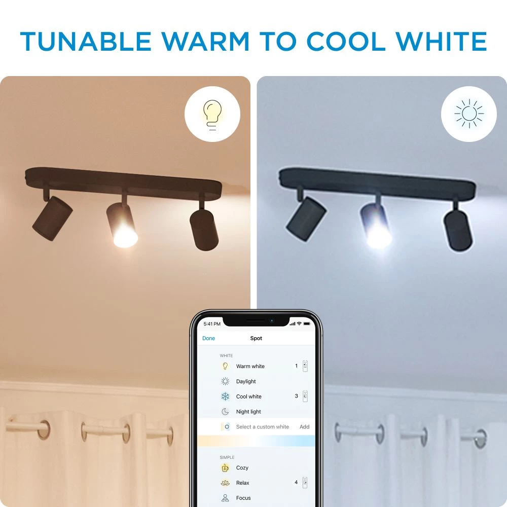 Med WiZ appen får du klart dagslys, når du har brug for ekstra energi og koncentration, og en glidende overgang til blødt, varmt hvidt lys, når du skal slappe af og sove.
