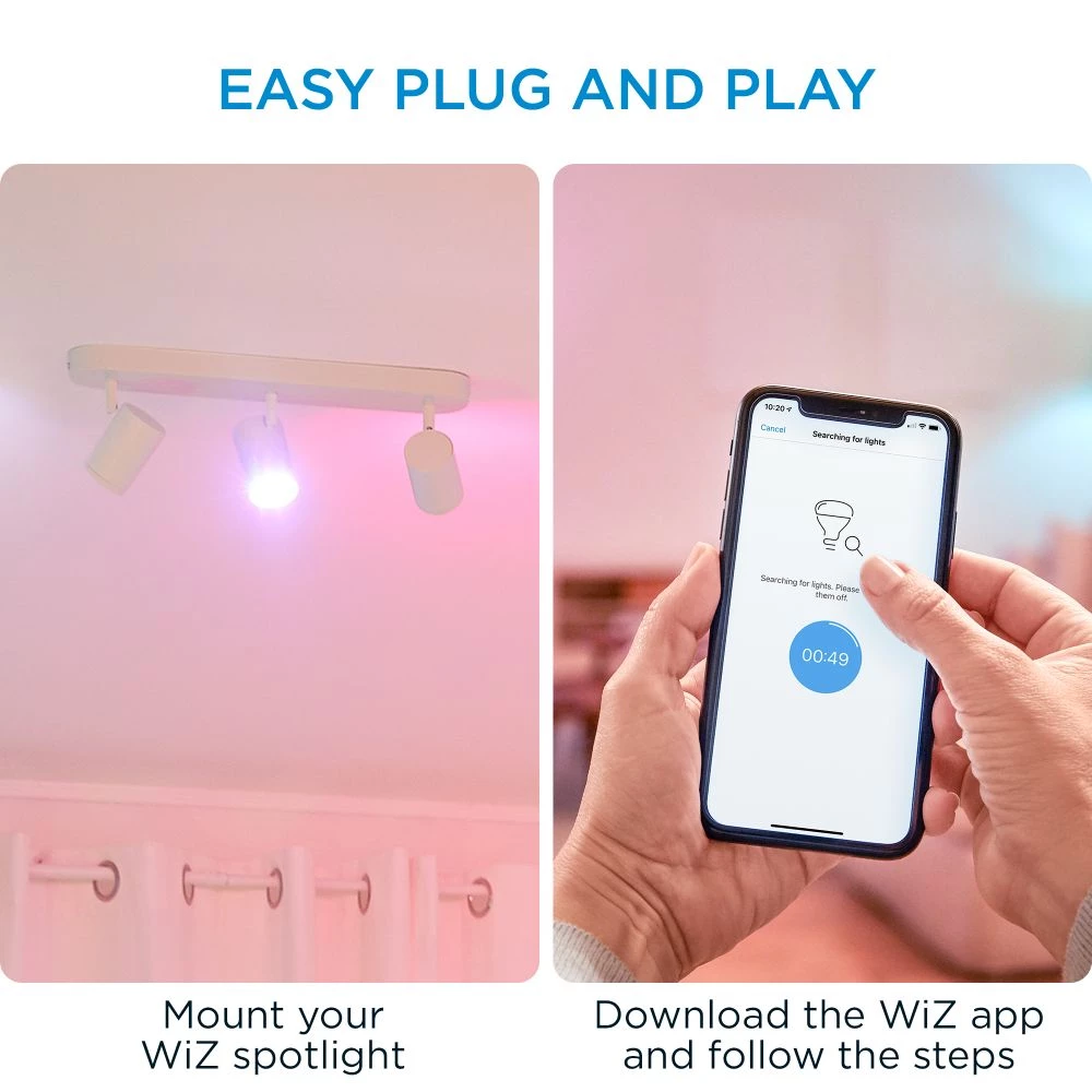 Tilslut strøm til din nye lyskilde, og download WiZ appen – så er du klar!